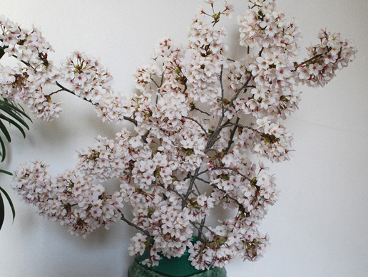 そのあと偶然にも園内の桜の太い枝が強風で折れたところを通りかかりました。 木が少し弱っていて、枝がもろくなっていたようです。 折れた枝は処分するしかないということで、 管理の方が分けてくれました。 桜の木はかわいそうだけれど、 おかげで玄関は桜の花の優しい香り。 どうもありがとう。