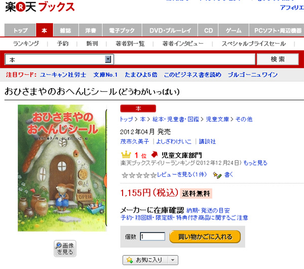 なんとクリスマスイヴに楽天ブックスで児童文庫部門第1位でした!