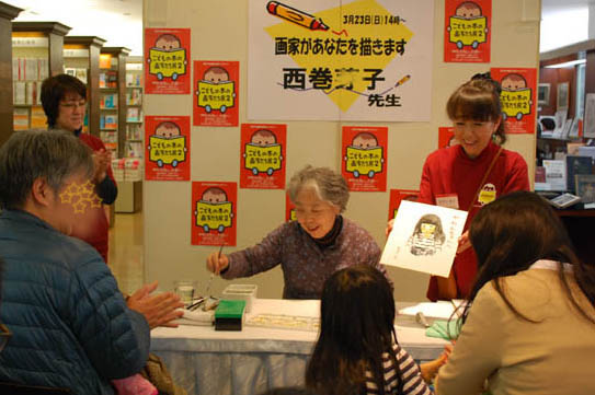 昨日は黒井健さんのサイン会と、 西牧茅子さんの「画家があなたを描きます」がありました。