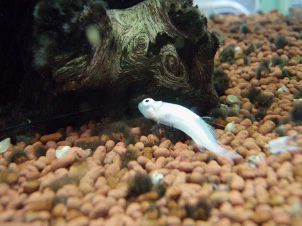 餌を自力で探せないので、室内のハナビの水槽に移し、